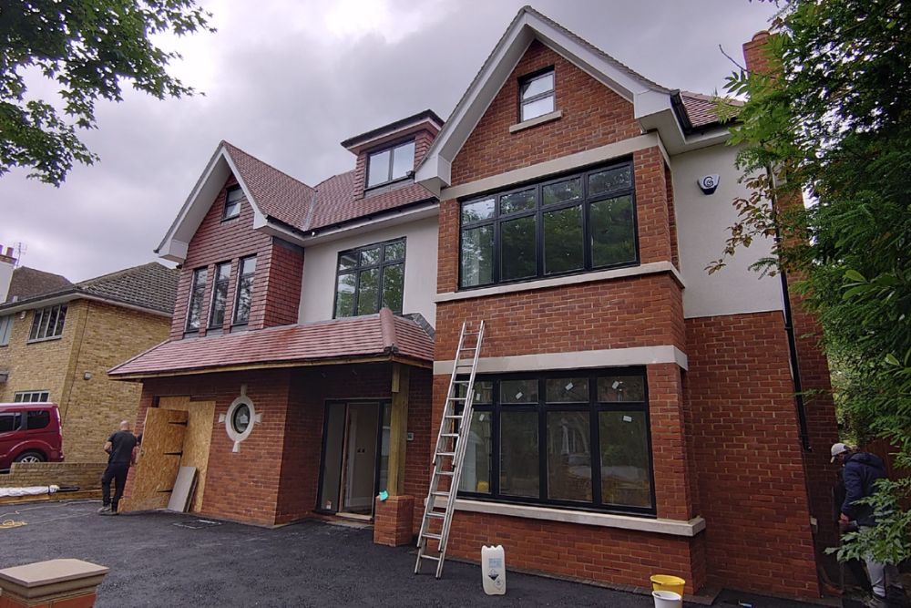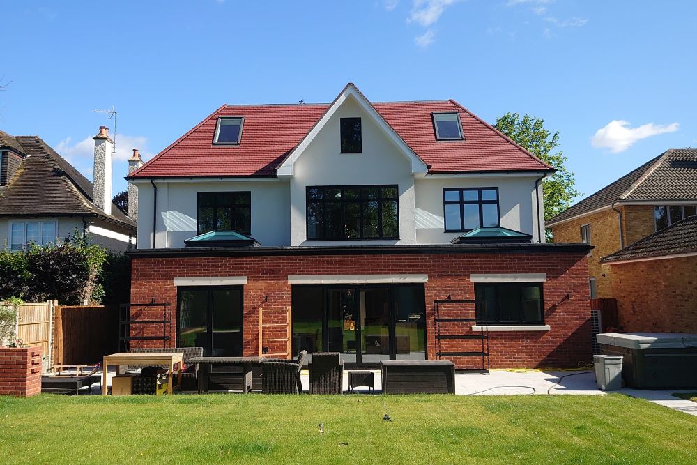 Taking inspiration from these, characteristic elements have been incorporated into the design such as: bay windows, gables, asymmetric elevations, large feature chimneys, brick detailing, tall windows with low cills bulleye windows and wide eaves. We used red brick, hanging tiles and off-white render to match the neighbouring materials palette.